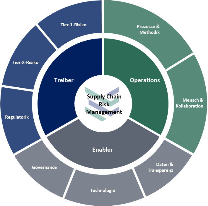 Erst das Zusammenspiel aus Treibern, Operations und Enablern mit allen Unterdimensionen ermöglicht ein effizientes und effektives Risikomanagement in der Lieferkette.